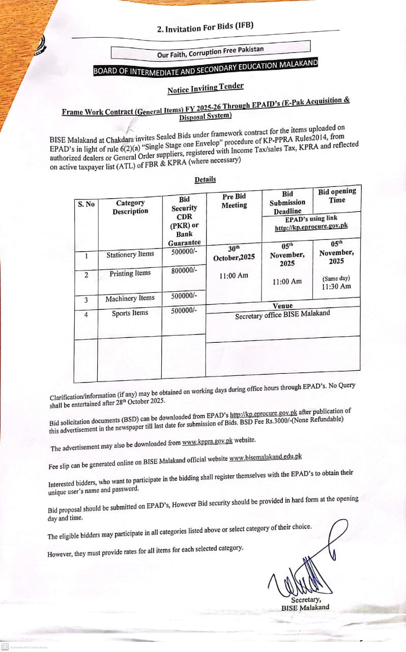 Board of Intermediate & Secondary Education, Malakand