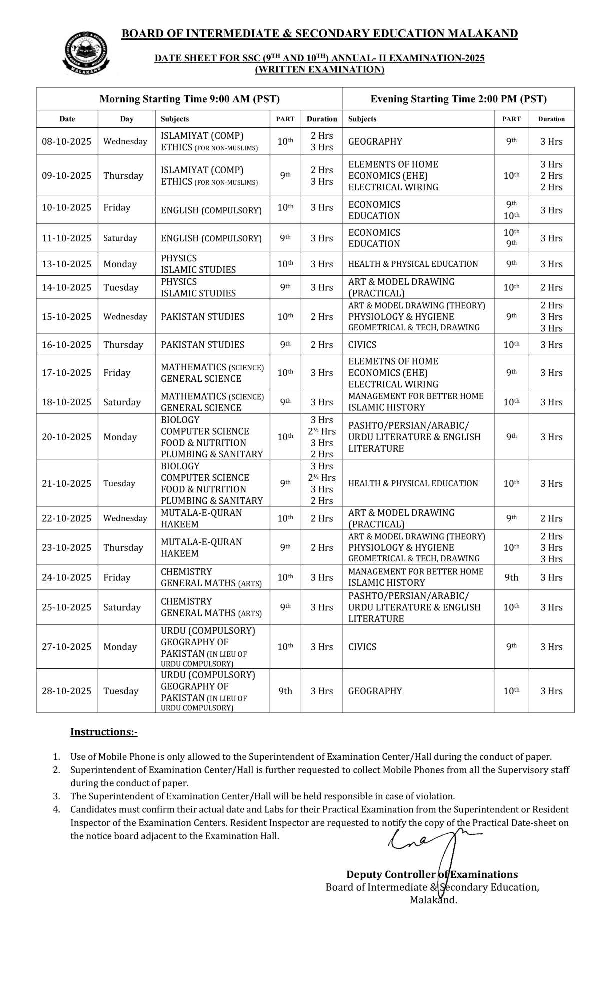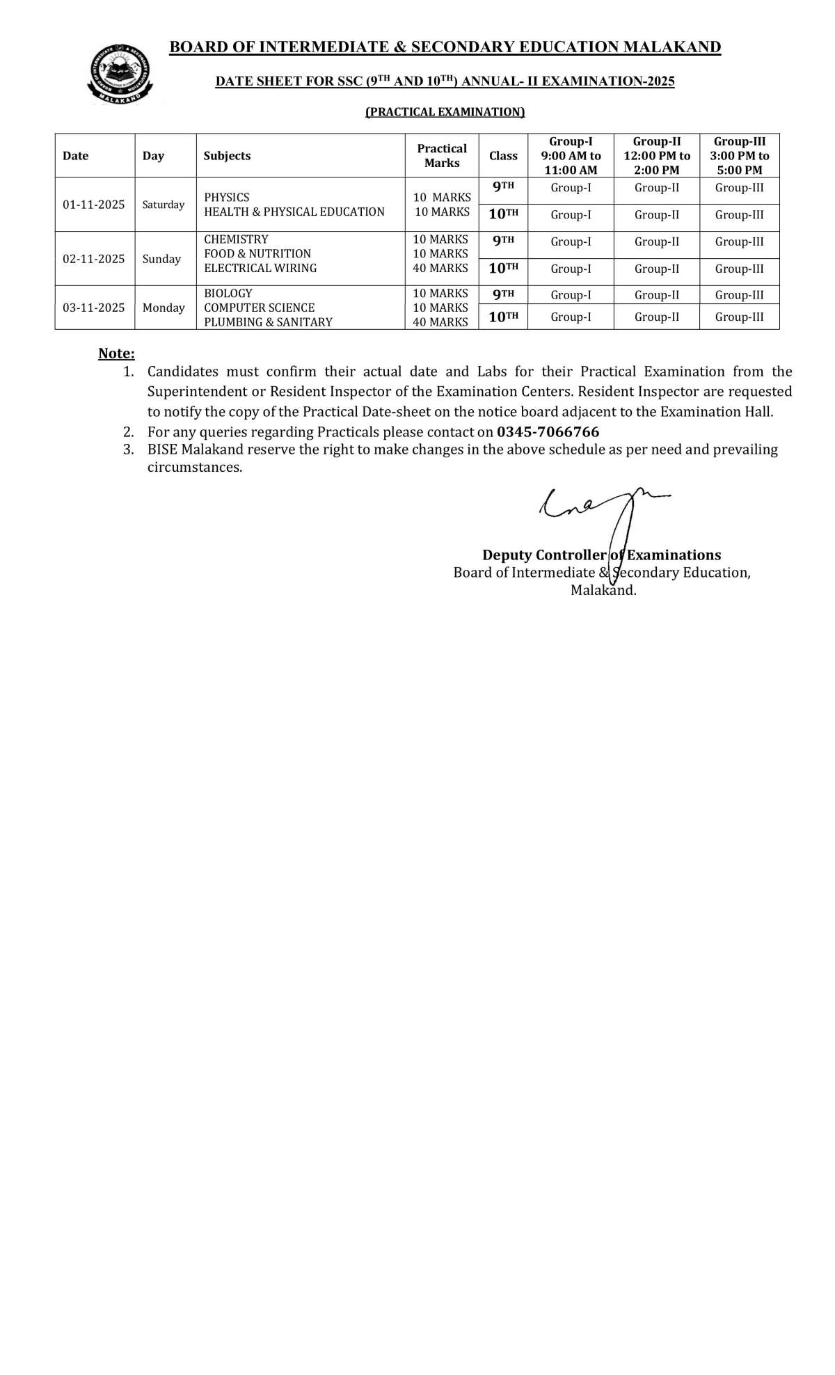 Recommendations for Inspection Duty for the Forth Coming SSC Annual-II Examinations 2025