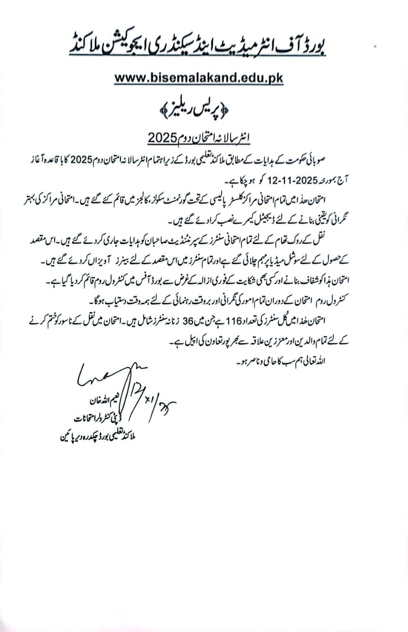 انٹرمیڈیٹ سالانہ (دوم) امتحان 2025 کے رول نمبر سلپس جاری کر دی گئی ہیں، ڈاؤن لوڈ کرنے کے لیے یہاں کلک کریں