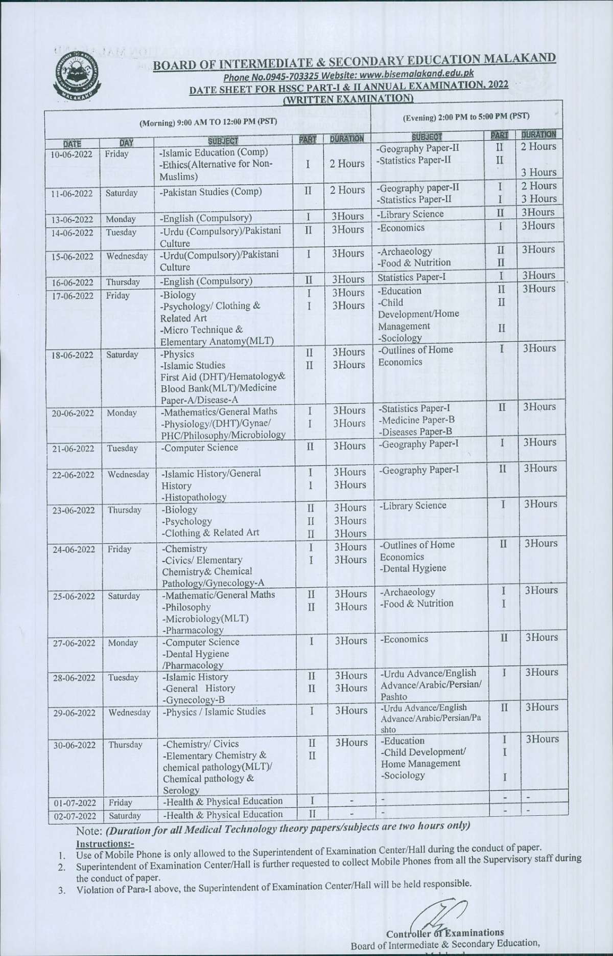 انٹرمیڈیٹ سالانہ (دوم) امتحان 2025 کی ڈیٹ شیٹ جاری کردی گئی ہے، یہاں دیکھیں